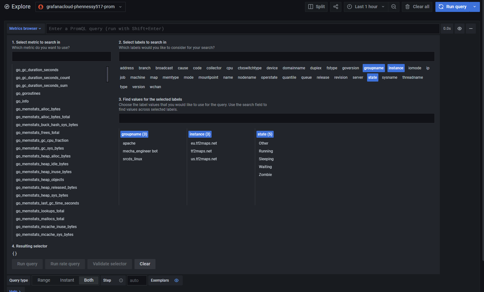 Now this is the part that was confusing for me at first. You need to run a local Prometheus on the server in order to publish / replicate the metrics to a remote one that does the actual aggregation. In this case, my local Prometheus published to the one hosted by Grafana Cloud.