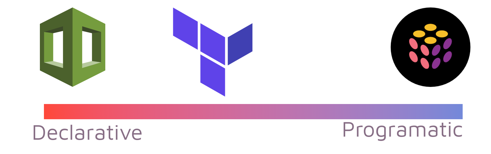 In my mind, the 3 big players for IaC are: CloudFormation, Terraform and Pulumi. The way I like to think about it is a spectrum where CloudFormation being the most "declarative" while Pulumi is almost literally just a library in a programming language. Terraform leans towards being declarative but has much better support for things like conditionals, loops, variables, passing data between modules and other programming language paradigms.